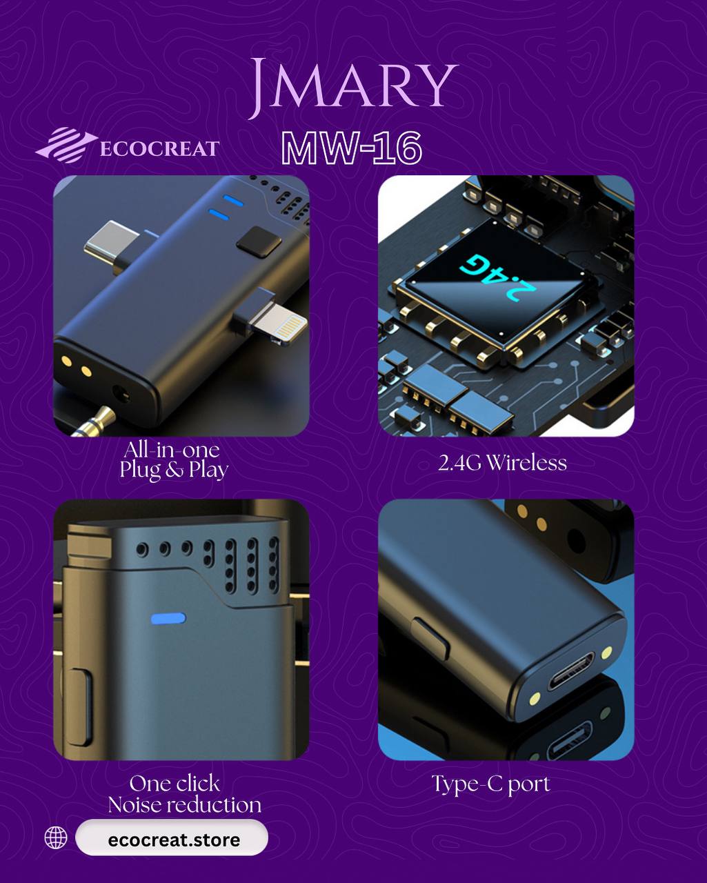 The Jmary MW-16 is a professional dual wireless microphone system designed for creators, streamers, and performers who want clear and stable sound anywhere. With its compact design and strong wireless signal, it’s perfect for vlogging, YouTube, live streaming, online classes, interviews, karaoke, and presentations.